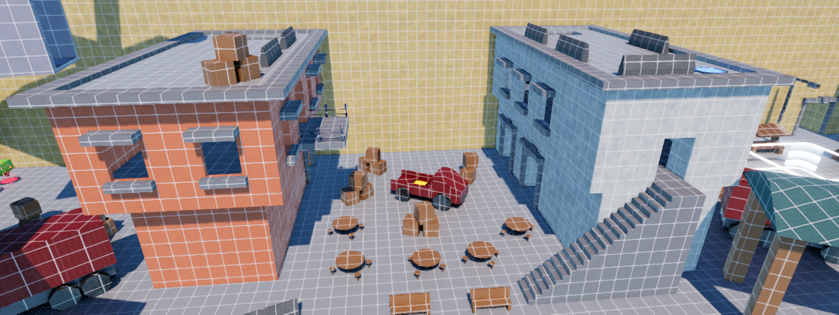 Hollowing Buildings: I reworked several previously “closed” structures to be explorable interiors, creating opportunities for close-quarters engagements. This design choice added a new vertical layer—ground floor to rooftop combat—and increased strategic depth by making interiors valuable strongholds rather than simple props. It also made the map feel more alive and believable, as buildings served both an aesthetic purpose and a gameplay function.