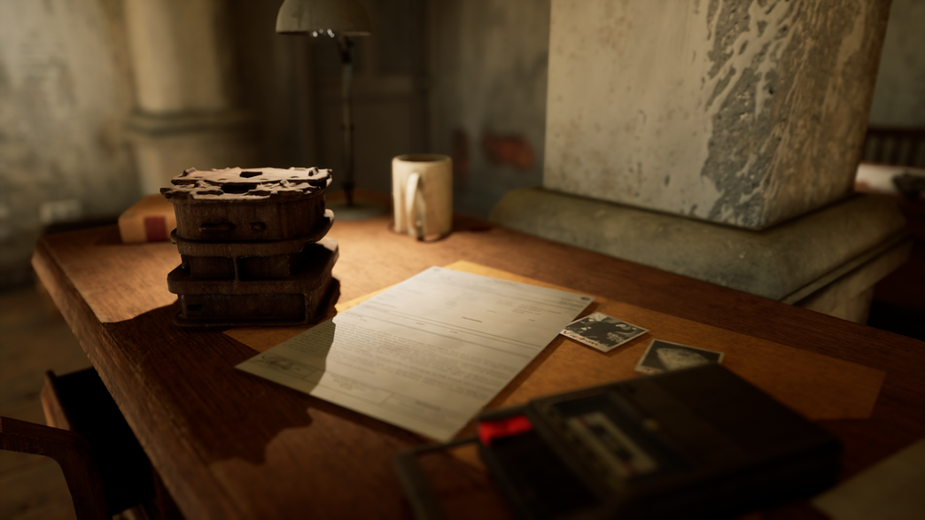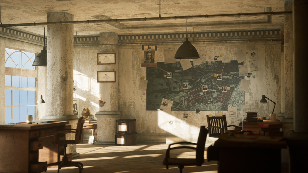 A strong emphasis was placed on environmental storytelling. Props such as paperwork, photographs, weapons, and office clutter were deliberately placed to imply an active murder investigation and suggest character behaviour without explicit narrative prompts. A central hero object was designed to act as a focal point for both composition and story, reinforcing the psychological tone of the space.